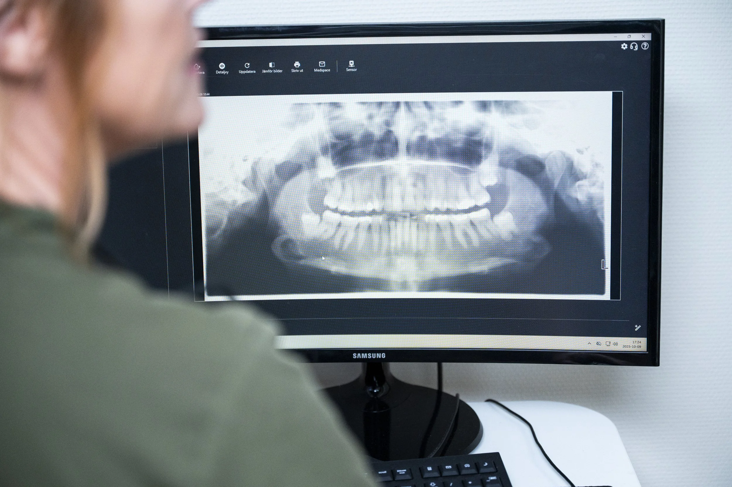 – Jag är glad att äntligen kunna erbjuda avancerade implantatoperationer. Käkkirurgen arbetar med att ersätta saknade tänder genom att operera in titanskruvar i käkbenet. Tidigare har vi hänvisat våra patienter till Specialisttandvården, vi har ett gott samarbete med dem – men kötiderna kan vara flera år. Nu kan vi snabbt erbjuda tider för implantatbehandlingar här hos oss på kliniken!