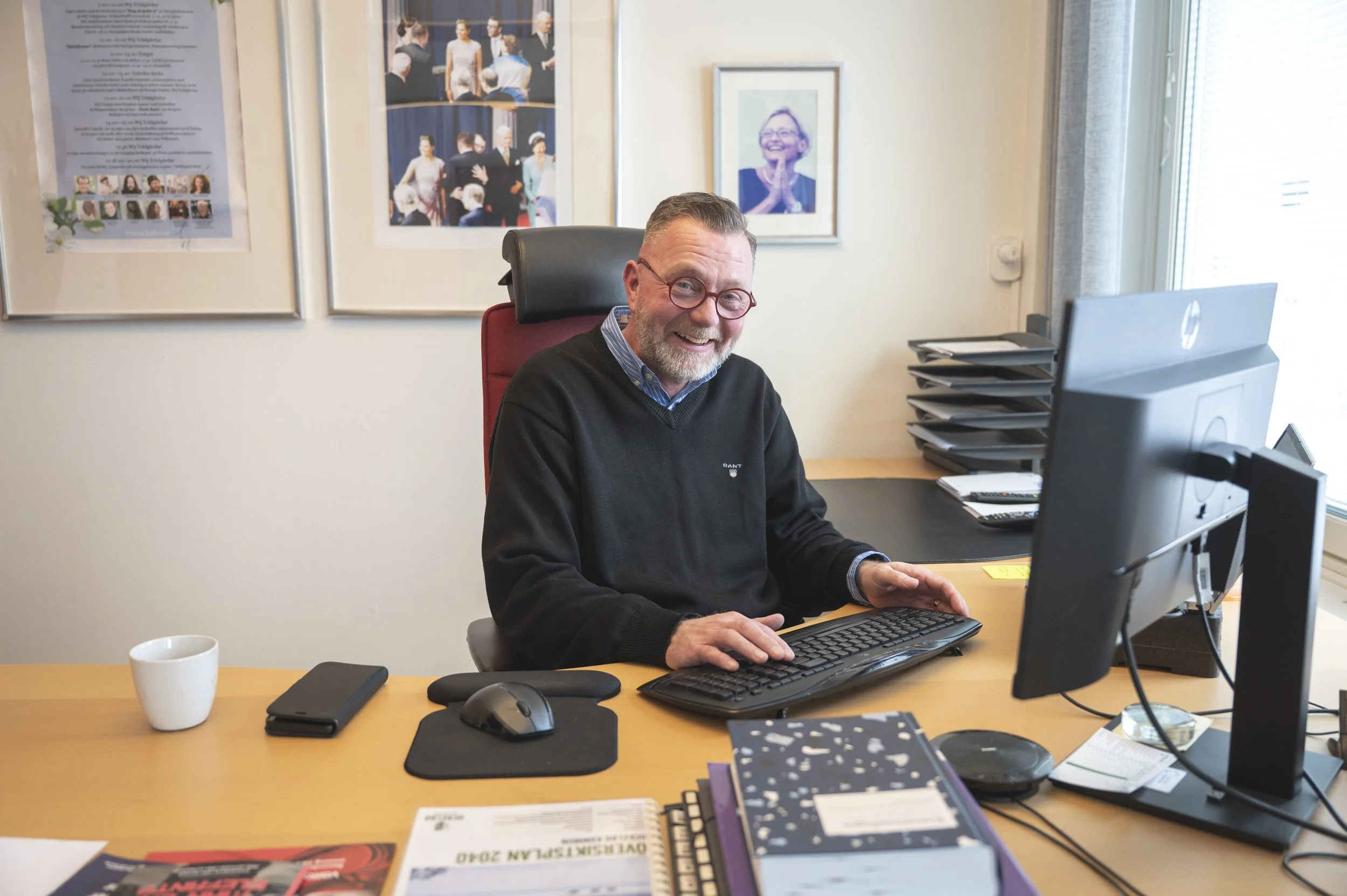 "Här ska alla fotografera mig: vid skrivbordet" Sa Magnus till vår fotograf. Foto: Henrik Westberg, Kuxabladet