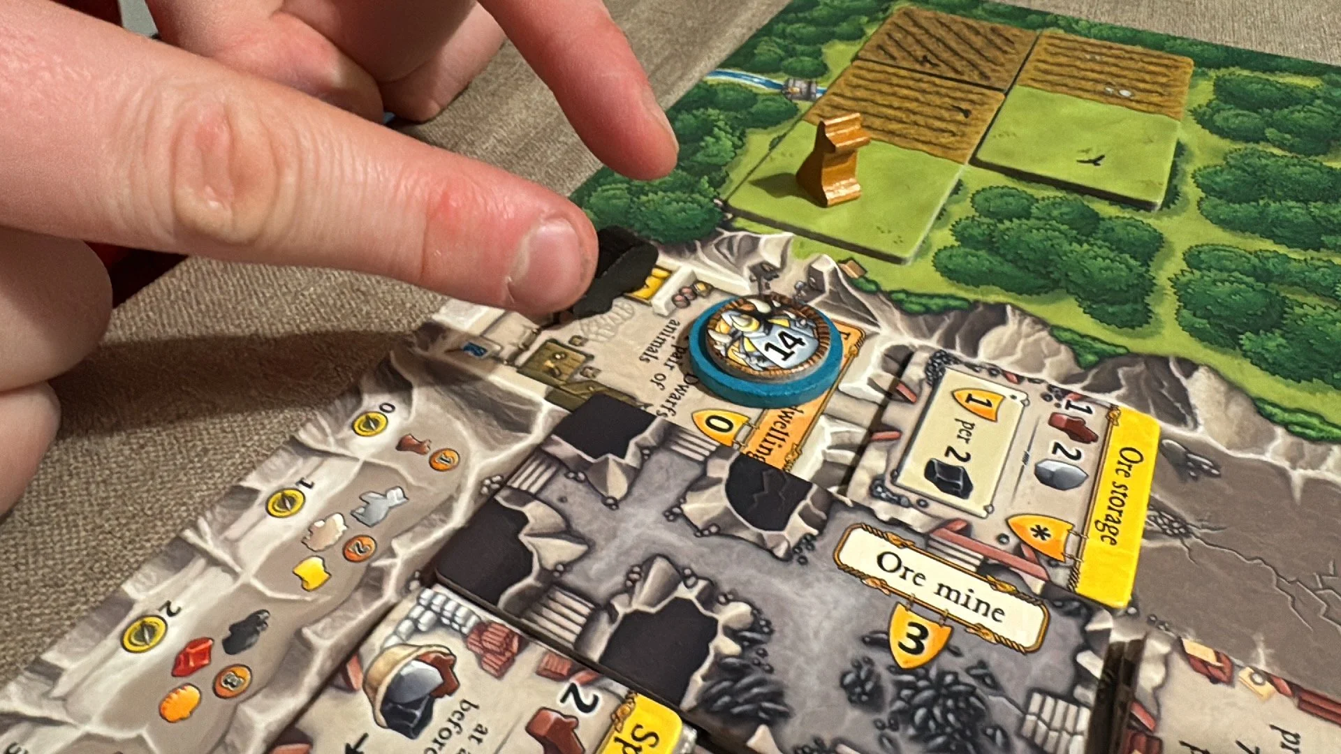 I Caverna börjar du med två dvärgar som ska ha gruvdrift och boende i sin grotta och exploatera skogen för att odla pumpor och vete och ha boskap. Det är den enkla, korta sammanfattningen av Caverna - the cave farmers.